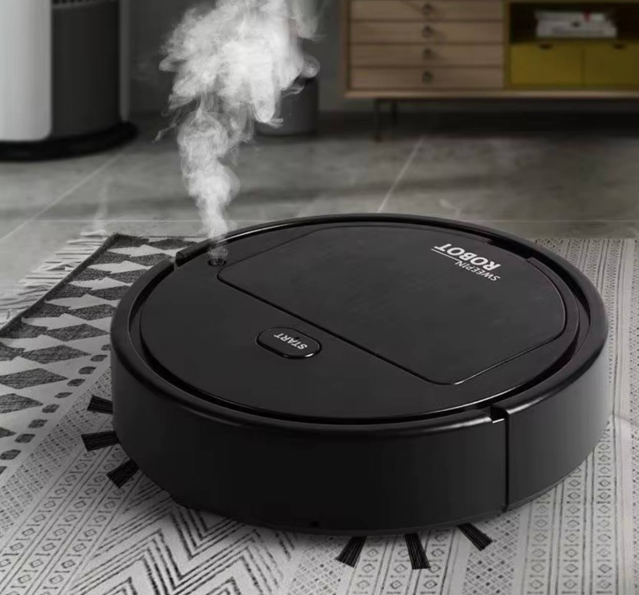 جارو شارژي به شكل رباطي خودش اتومات حركت مي كند و تمام كثافات را به راحتي جم مي كند